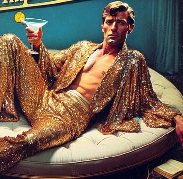 The night returned in disjointed flashes — not memories so much as scattered, chaotic sparkles of questionable behaviour. Cosmo Farfetch saw bright neon lights… a throne prop… someone pouring Jell-O shots directly into Miles’ mouth… He-Man flexing for no reason whatsoever… and himself laughing, clapping, and possibly encouraging the entire debacle.