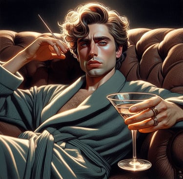 Cosmo stumbled backward with that unfortunate blend of panic and theatricality only he could achieve. His chandelier cape swung out like a rogue satellite, clipping a passing waiter whose tray of champagne flutes sailed upward in a sparkling burst of liquid regret.